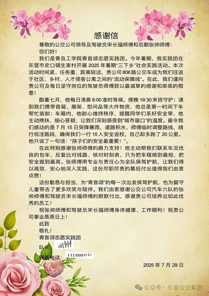 圓夢高考|“你們全力以赴,我們全程護航!”為保障高考期間交通順暢有序,東營市公交集團以高度的責任感提前布局、周密安排,傾力打造安全、高效的送考保障體系,誓為全市考生鋪就一條平安赴考的坦途。市公交集團選拔駕駛經驗豐富且服務意識突出的優(yōu)秀駕駛員...[查看更多>>]更多>>> 最新公告